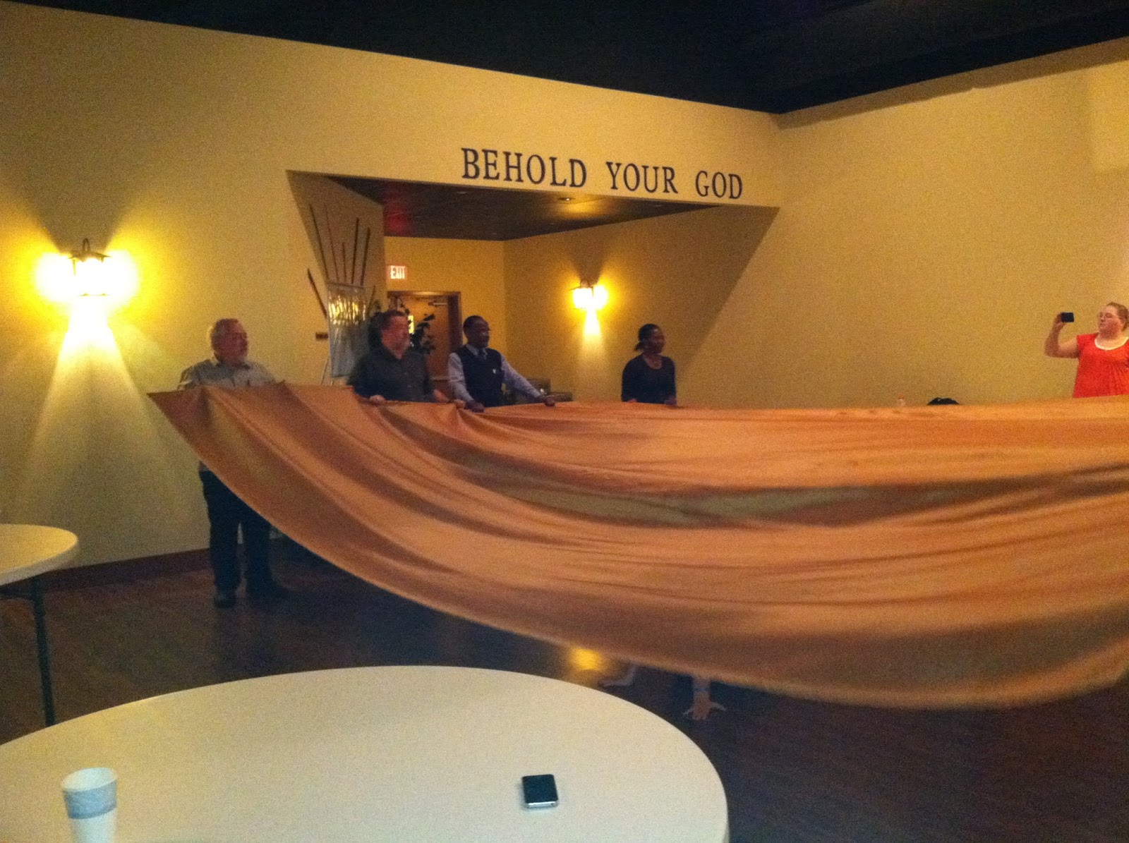 I see an angel in the light given off by these lamp lights at our church. Do you see it too?