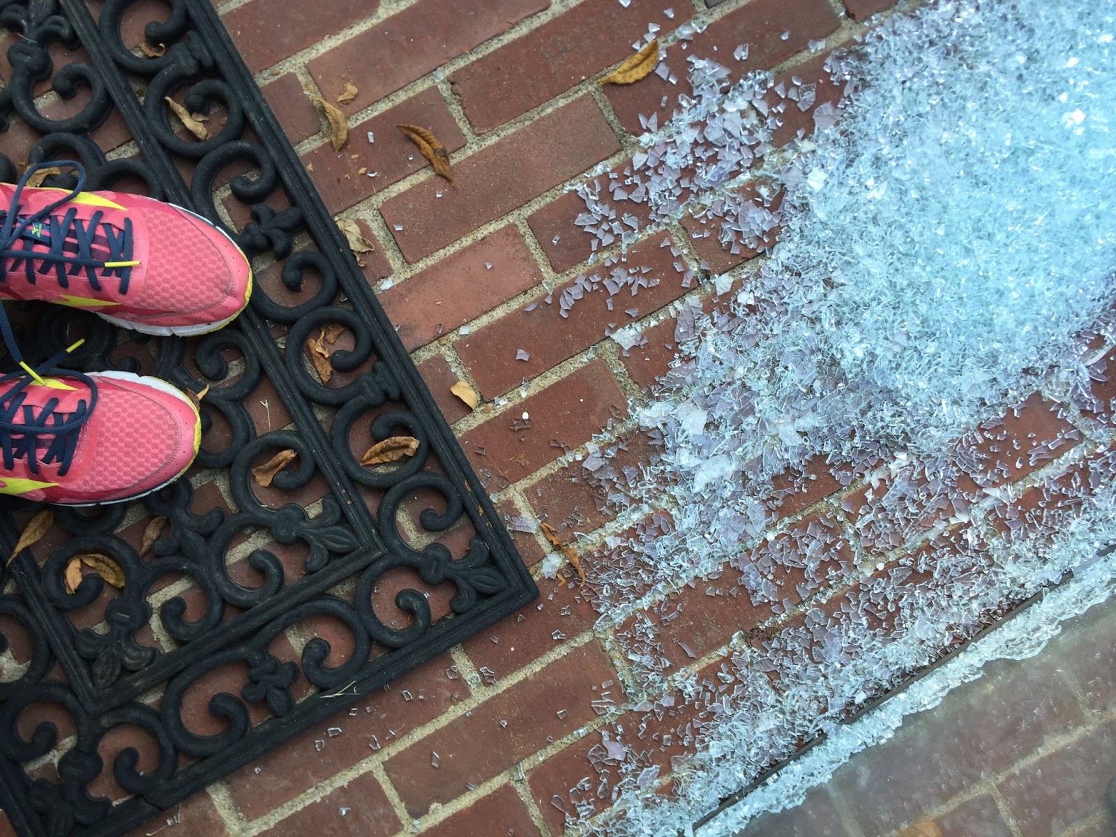 As I knelt to sweep up the mounds of tiny sparkling broken glass upon the brick, I did think there was beauty in this pile of brokenness.  I was not happy about it though.