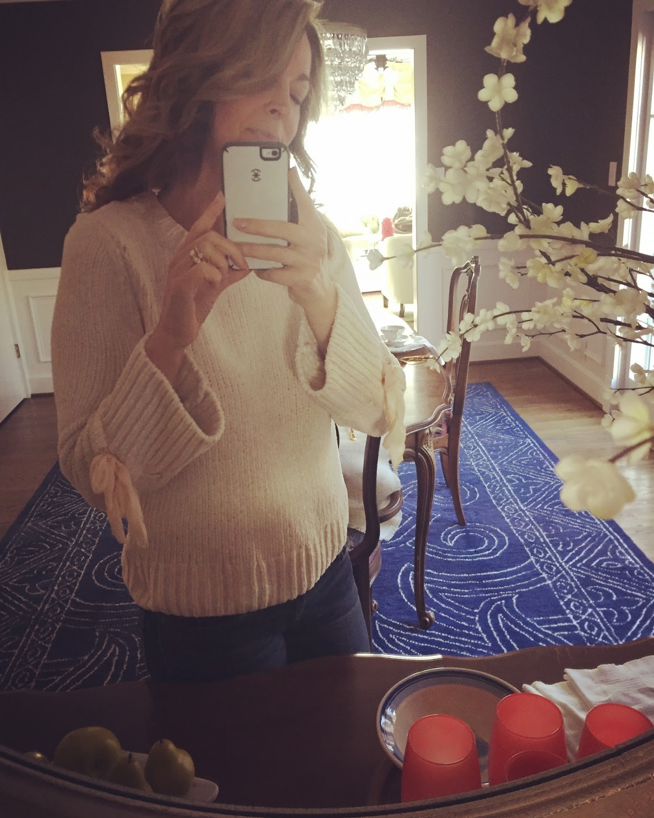 Since it’s been a while since I shared a current picture of me, I thought I’d share one from yesterday. It was finally cool enough in the morning to wear a ribbon sleeved sweater that I really liked and I snapped a picture of me and my curls and the sweater.
