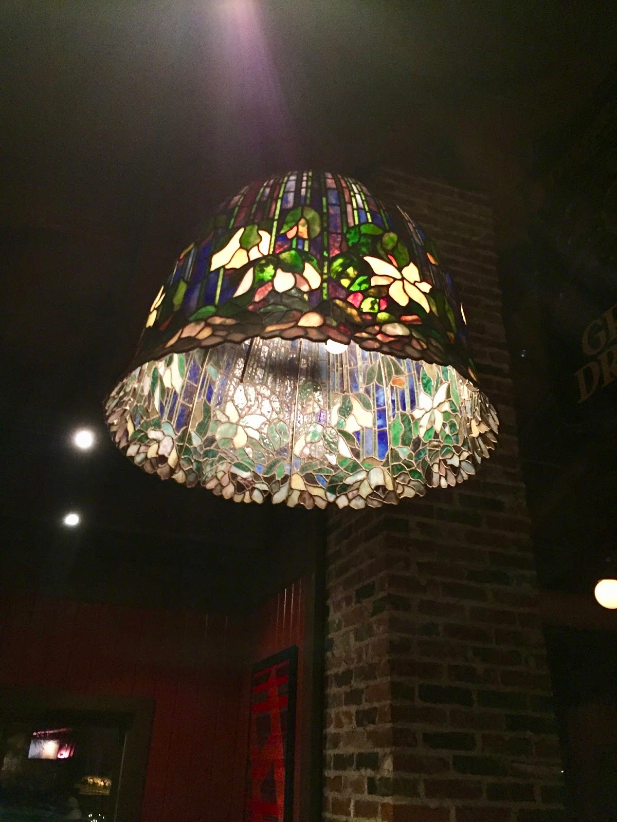 The first night we were in St. Louis, I convinced The Salesman that we should eat at Houlihan’s – one of our favorite restaurants when we lived there. Although everything about the restaurant seemed different than we remembered it being 29 years ago, I really enjoyed the light fixtures… I mean seriously, look at this Tiffany style shade – it is gorgeous!