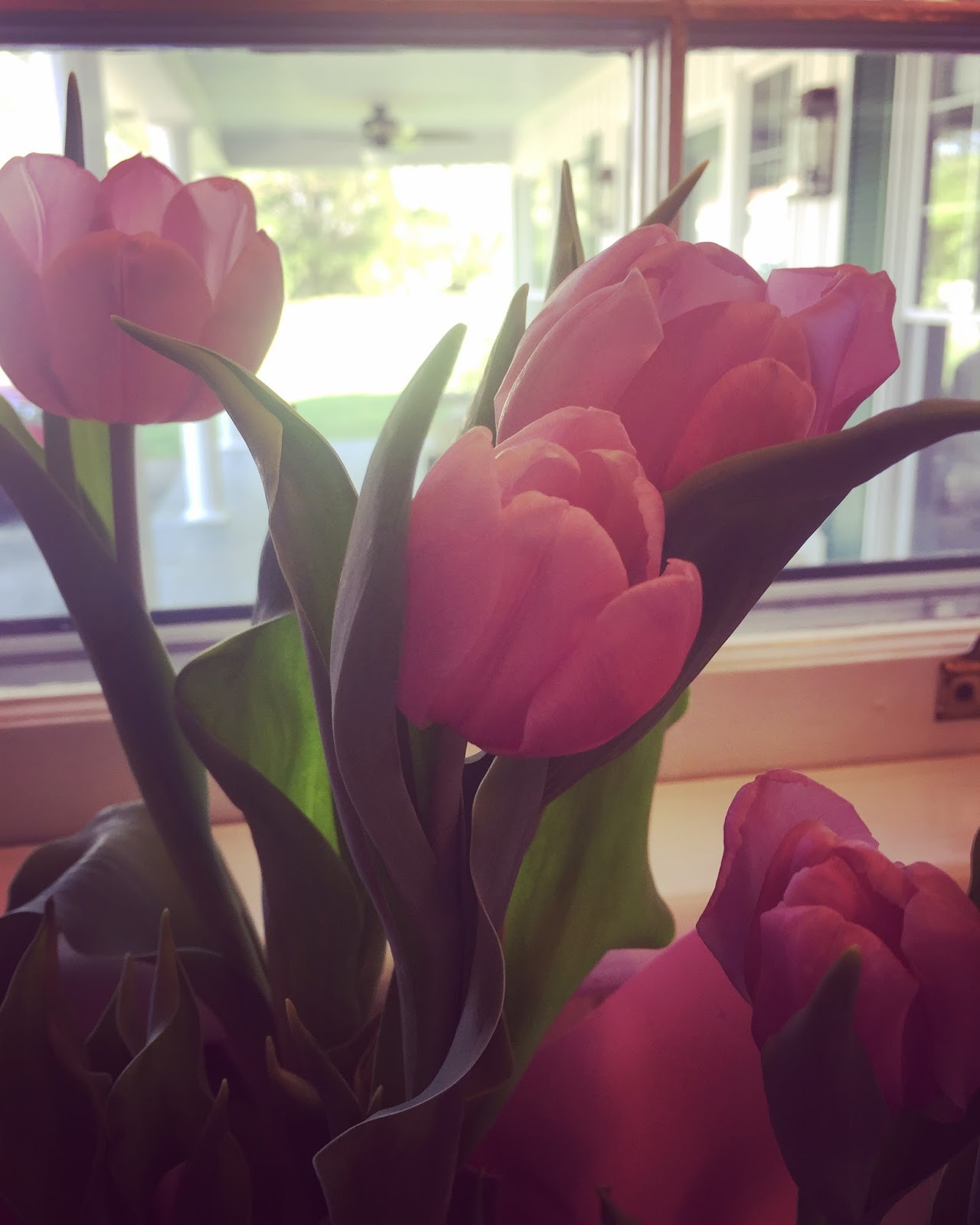 On Saturday, I picked up some lovely tulips at Aldi’s, and as they were unfolding, against the background of the grey slate, it seemed that the picture echoed that all of creation must wait.