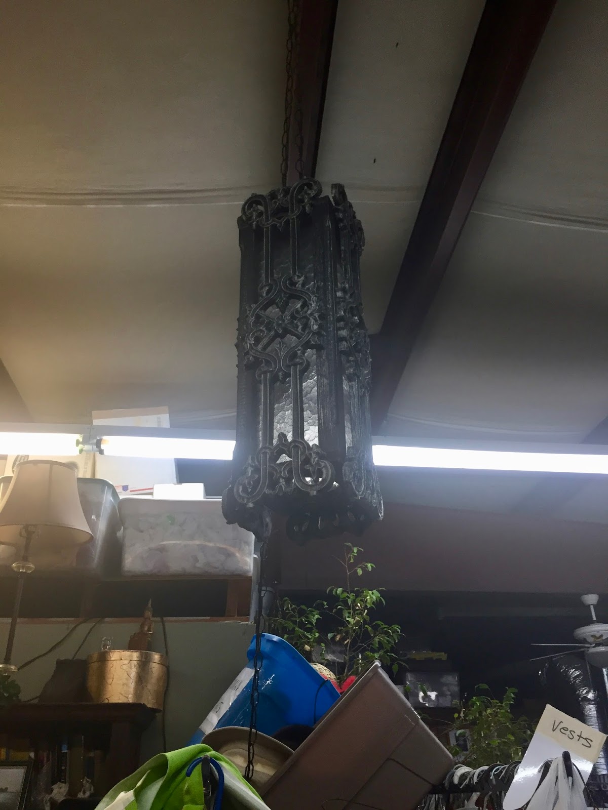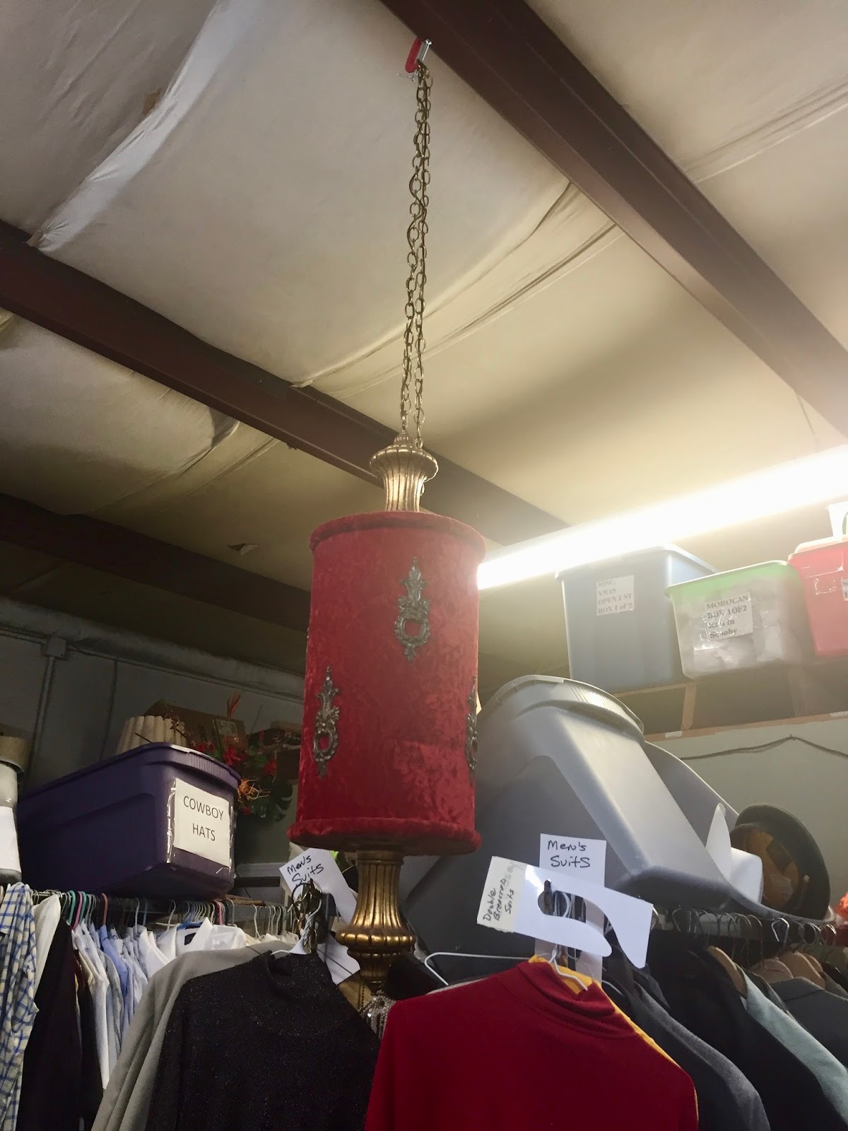 Our theatre director invited me to go with her on a trip to find costumes for the upcoming play which opens this month!!! It was such a fun adventure! Four of our group went and we had such a fun time chatting and being together. I found costumes for both of my characters! Yay! And of course, I found some lovely lamp lights scattered around the costume shop. And as you can see, they were just right there with the costumes and props.