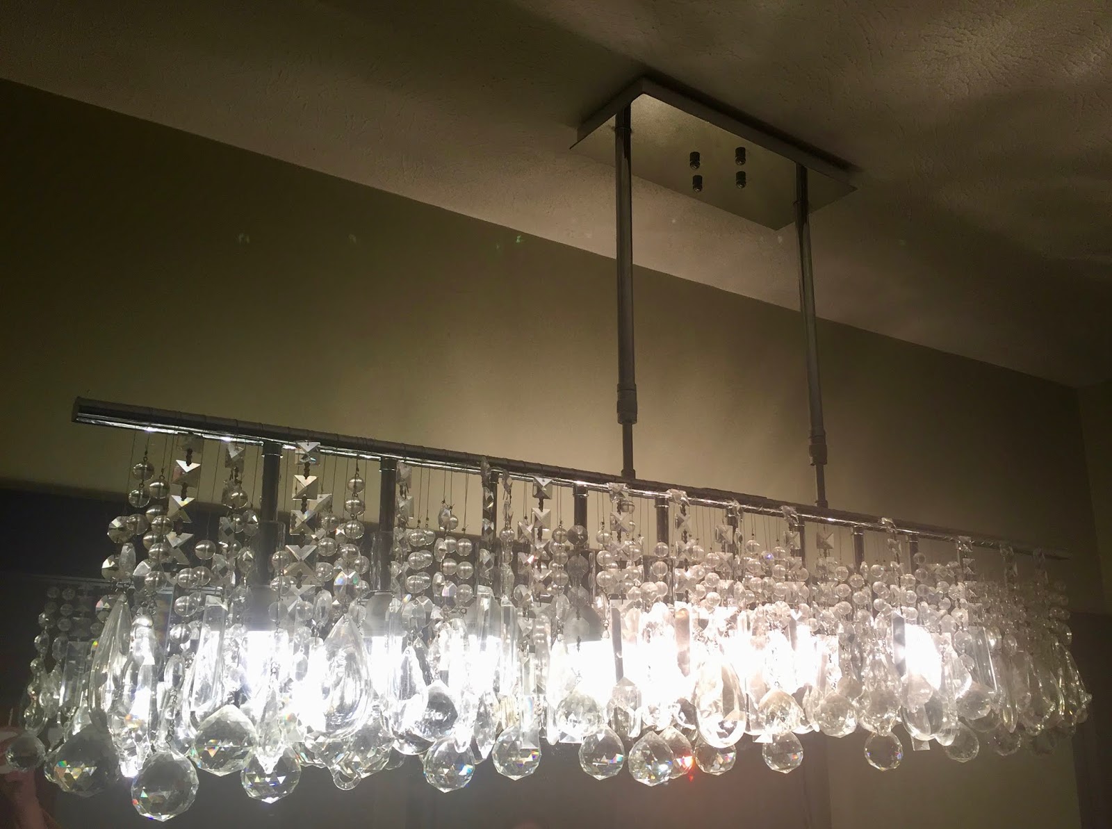 While attending a Royal Wedding Party, I was given a tour of the home and asked if I could take a picture of this linear light. I don’t think I’ve ever noticed one like this design. Aren’t the crystals lovely?