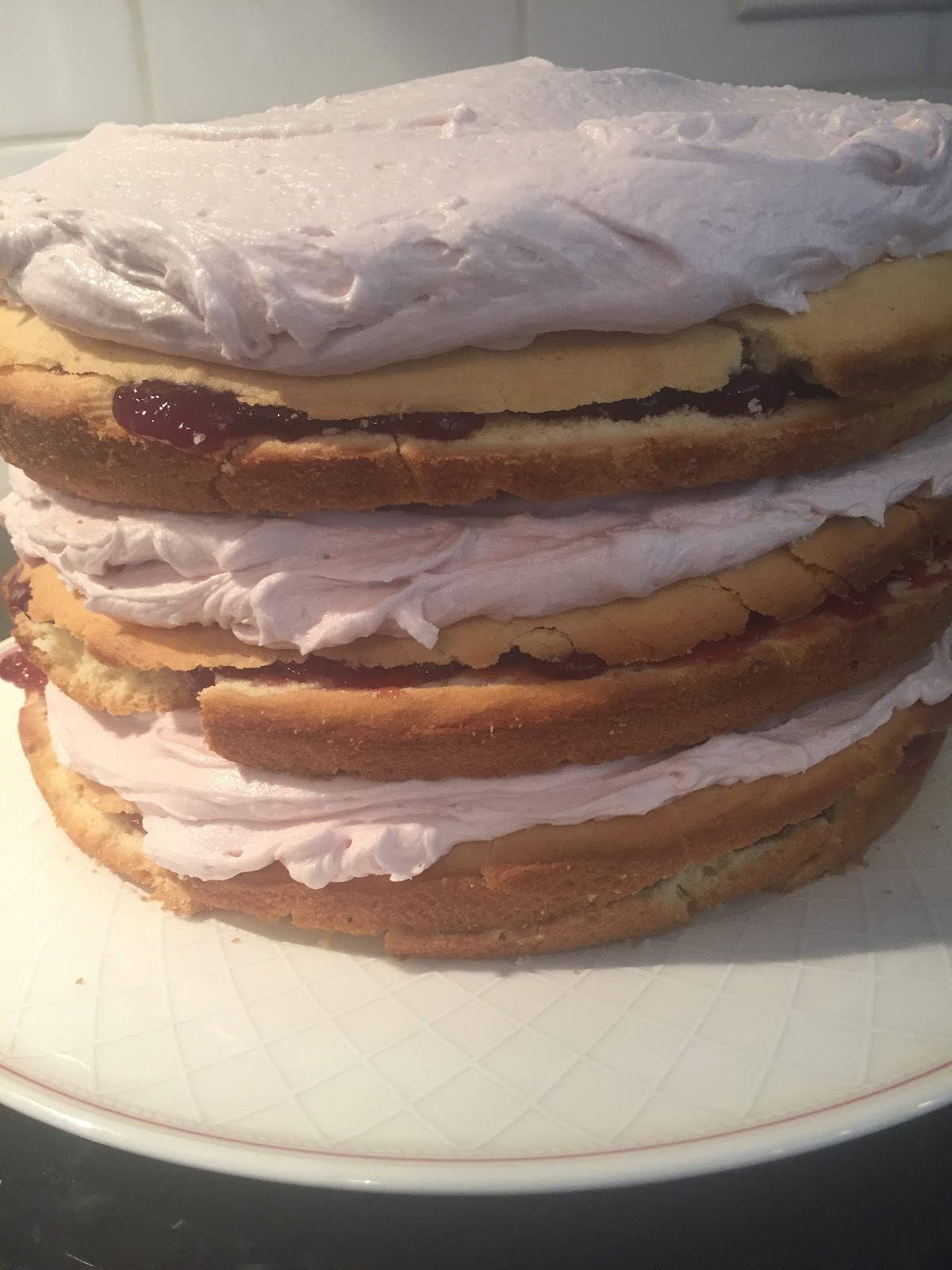 Here is is before the icing hides all the broken layers! Does anyone out there have a good way to cut cake layers? Thank goodness for icing!