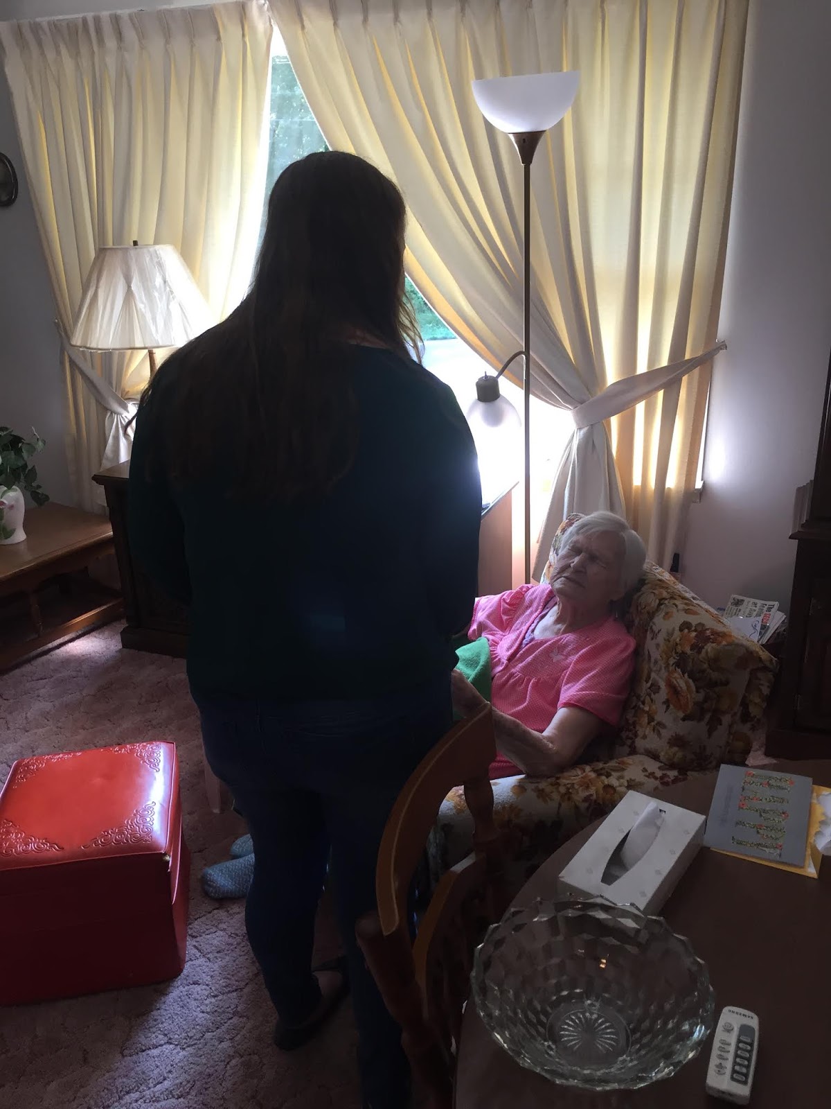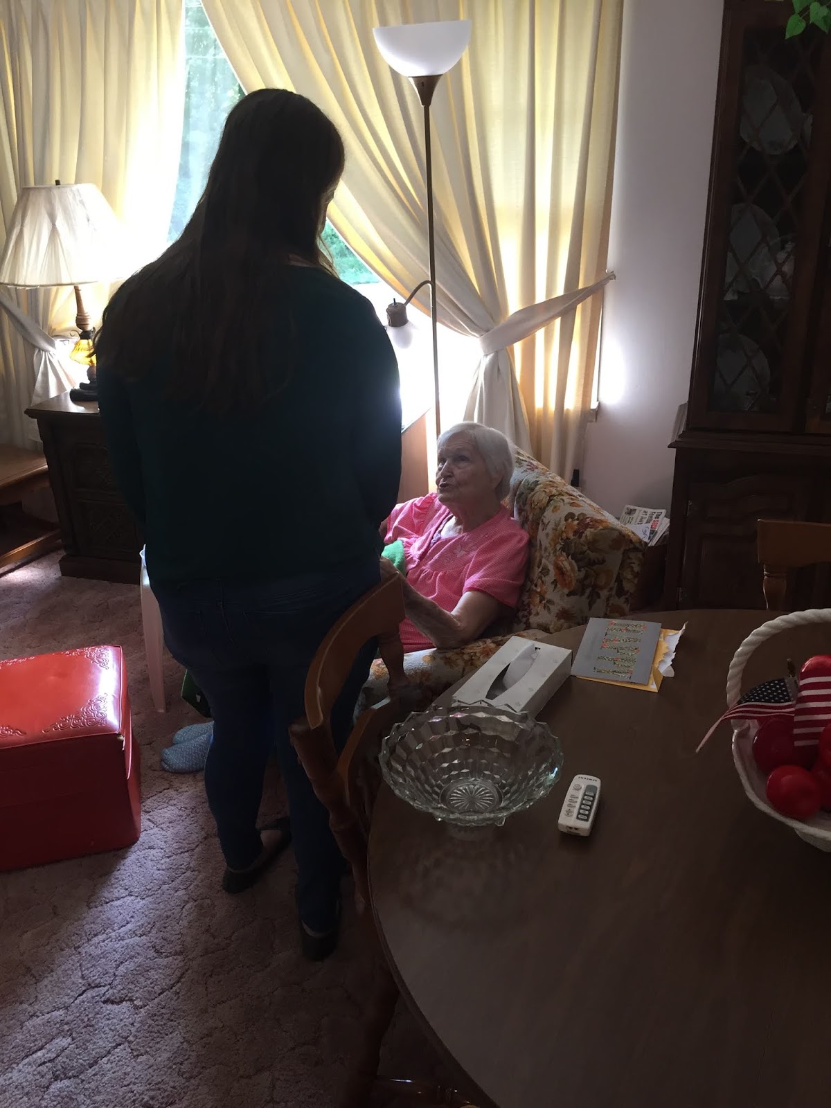 There is such beauty in my grandmother’s actions and words, as she encouraged Audra. I wish you could have been there too, to hear her tender words, as the morning sun brightened the room and spilled through the drapes that were drawn back . Time seemed to stand still as love was expressed and received. There was an ethereal feel and a beauty that shone brightly though not one of her five living room lamps was turned on. And the lamp on the stereo has been covered in plastic for as long as I can remember…