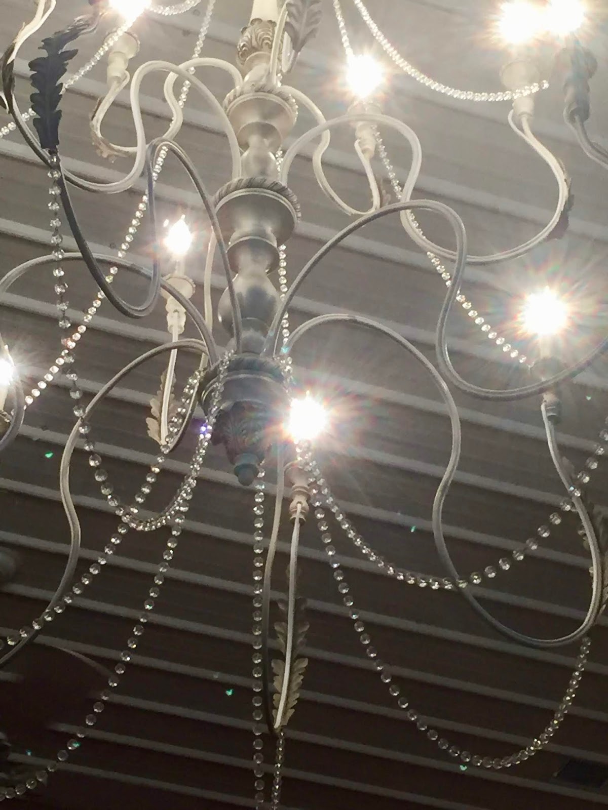 As I looked up at The Carriage House, I saw beauty to be enjoyed in the style and lines and crystals and iron of the chandeliers.