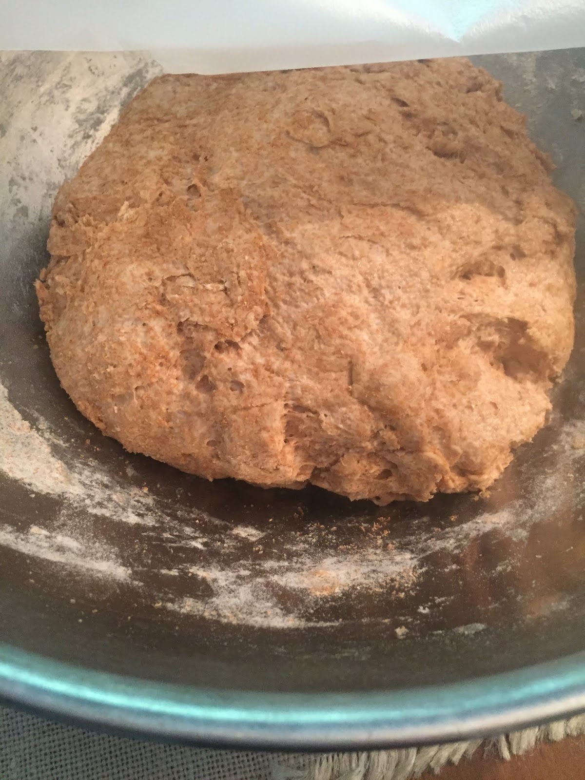 After letting the dough rise for several days, I divided it in half. Gwen suggests letting the dough rest so that it will lower the carb impact. So I gave it three days in the refrigerator…