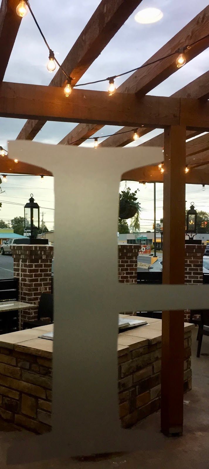 So, gas lanterns are a favorite of mine.  I spied these lovely lanterns on the brick pillars in their patio seating area.  They have gas lanterns both inside, and outside, the restaurant.  I didn’t get any pictures of the inside lanterns this week; but, they are lovely.