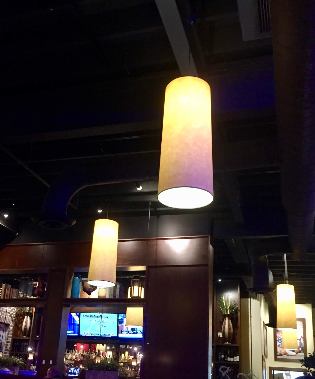 Out to dinner with The Salesman, and looking up at these lovely cylinder shades in our local Holston’s Kitchen: