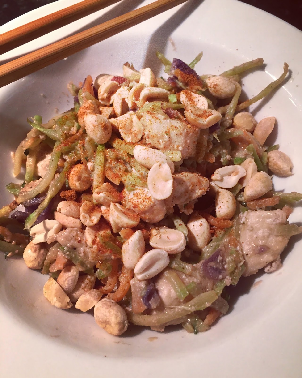 And, I believe, everyone in my family used chopsticks to eat this tasty dish, except me. I was hungry and didn’t want my chicken and peanuts falling off my chopsticks a gazillion times, so I used a fork.