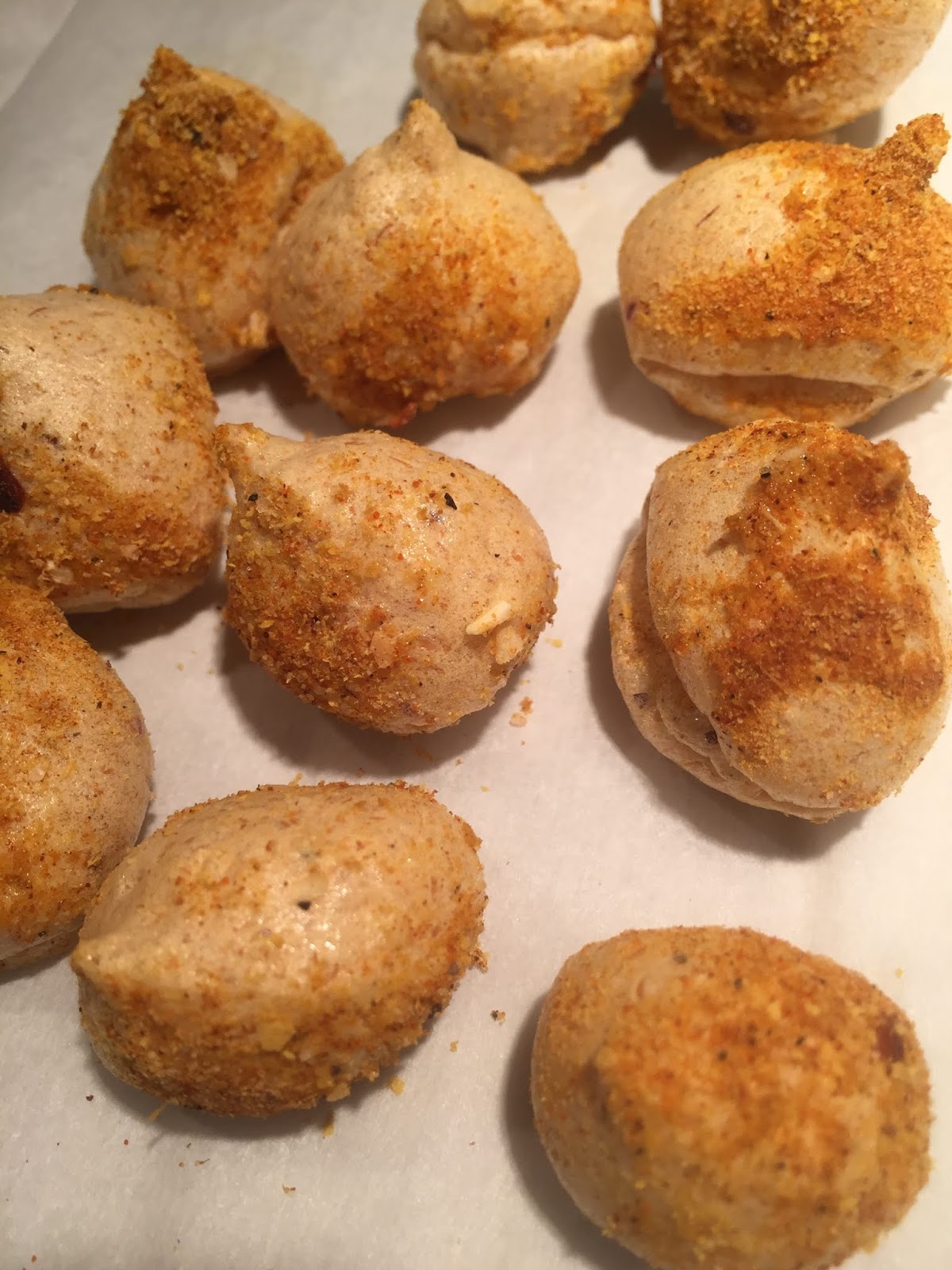 Not letting the look of them detour me, I moved on to making the seasonings/flavorings for the puffs. Options were given for a sweet or savory Crunch Puff. I went with savory because I was competing with a Cheese Puff Ball. Or trying to compete with one. I made the Trim Healthy Mama Macho Nacho seasoning: