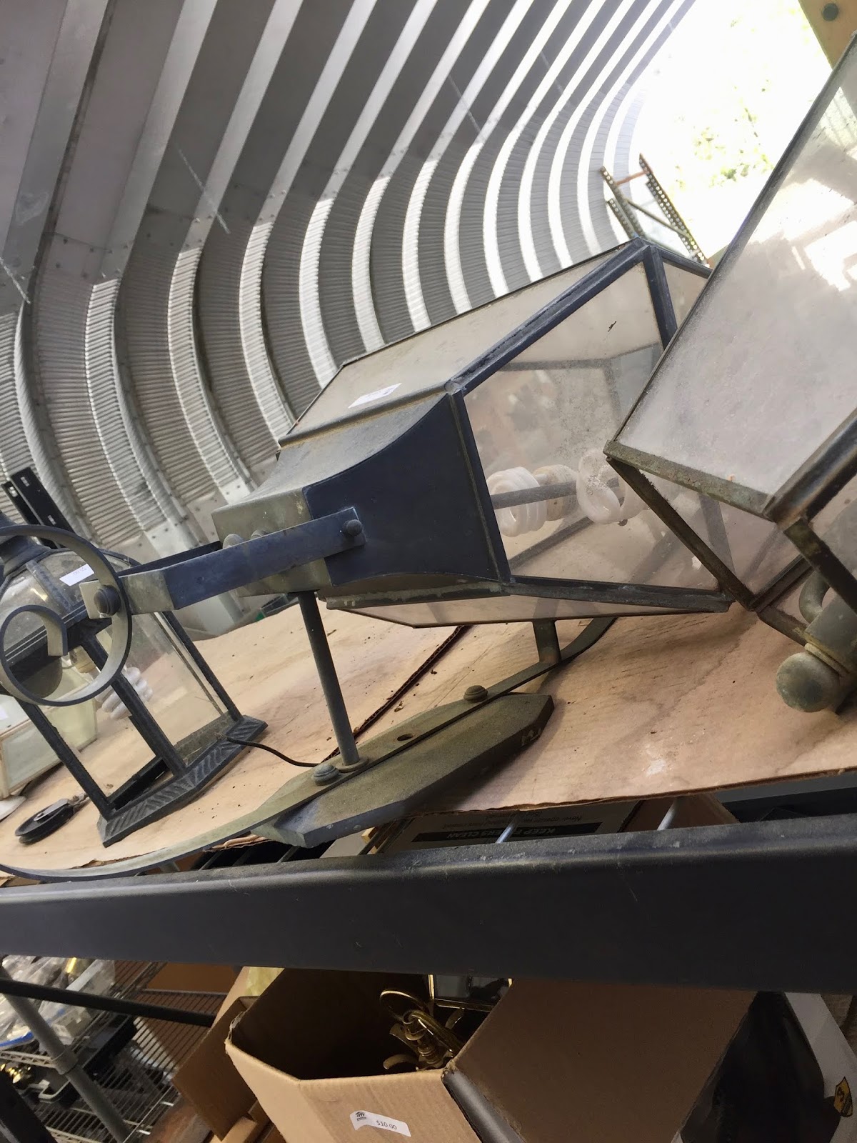 My travels last week took me past a favorite thrifting spot, and I had just a few minutes to stop in and browse. Although I didn’t need anything, and didn’t buy anything, it was enjoyable to look around! I found a set of lovely wall mounted vintage lanterns – the graduated shape, the curves of the smooth metal, the traditional style…all were so beautiful to me. Edison-style bulbs would give an authentic look to these lanterns.