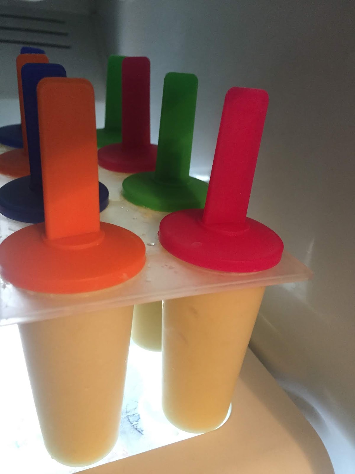 Because looking into the freezer for a popsicle or creamsicle was an anticipated event when my mom made them for my brother and me, I share a look into our freezer, and say:
