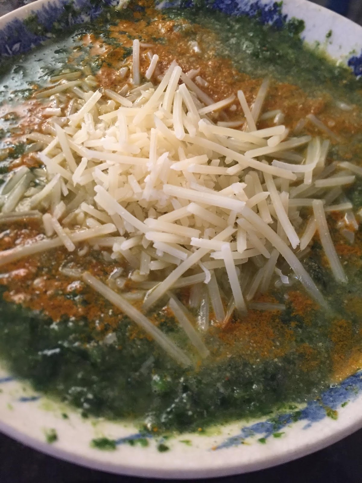 I garnished my bowl with a generous sifting of turmeric and fresh grated parmesan cheese. There are many serving ideas, such as adding: