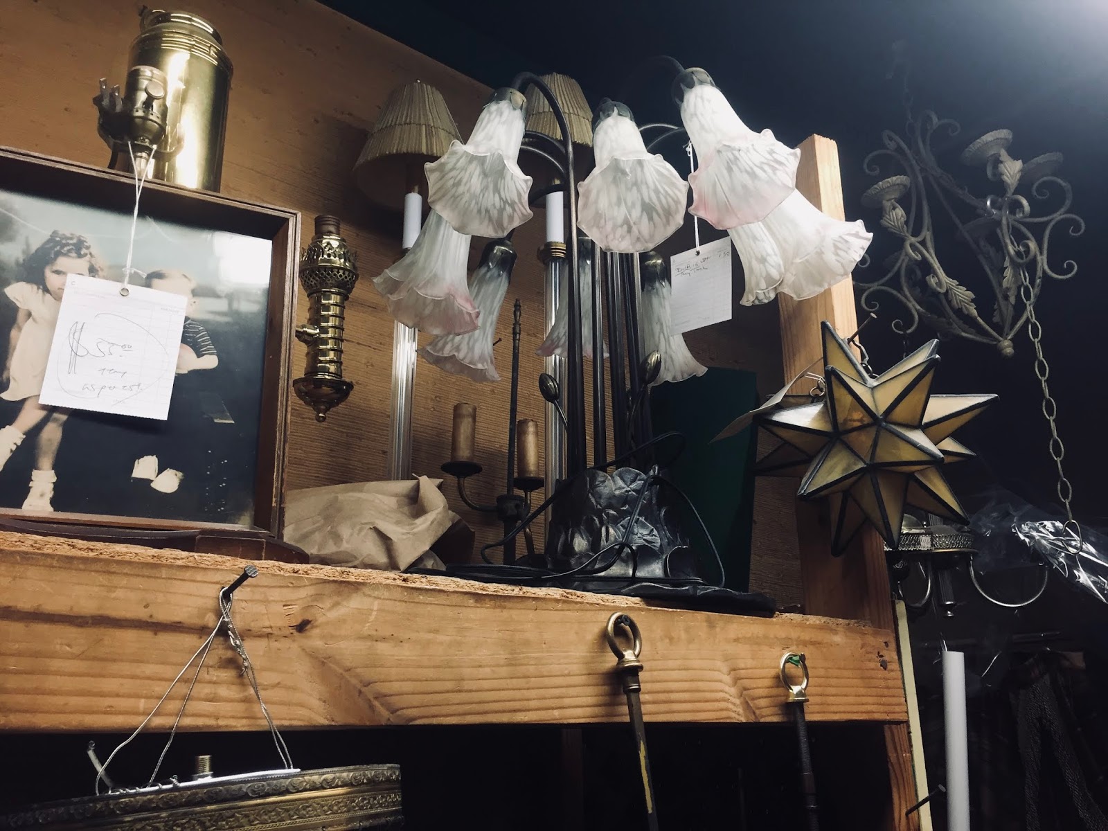 Then up on a top shelf, this beauty reminded me of the Tiffany Studios lamp we found at Barclay Gallery in New York.