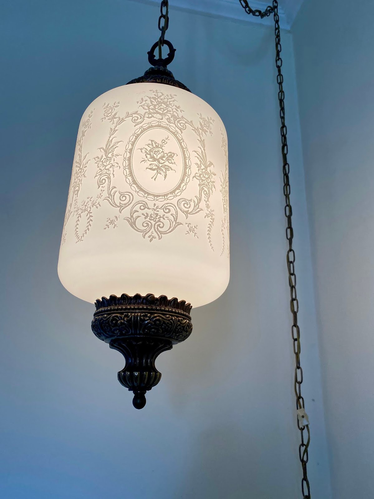 There were several stunning fixtures and chandeliers in this historic home; but my favorite lamp was this beautiful Hollywood Regency swag lamp.